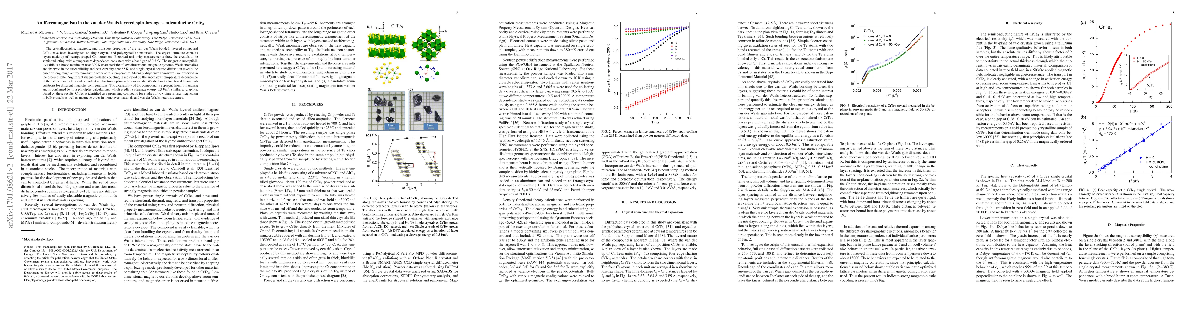 CrTe3, a van der Waals layered semiconductor, exhibits semiconducting behavior with a band gap of 0.3eV and undergoes long-range antiferromagnetic order at 55K, as revealed by neutron diffraction and accompanied by significant magneto-elastic coupling.