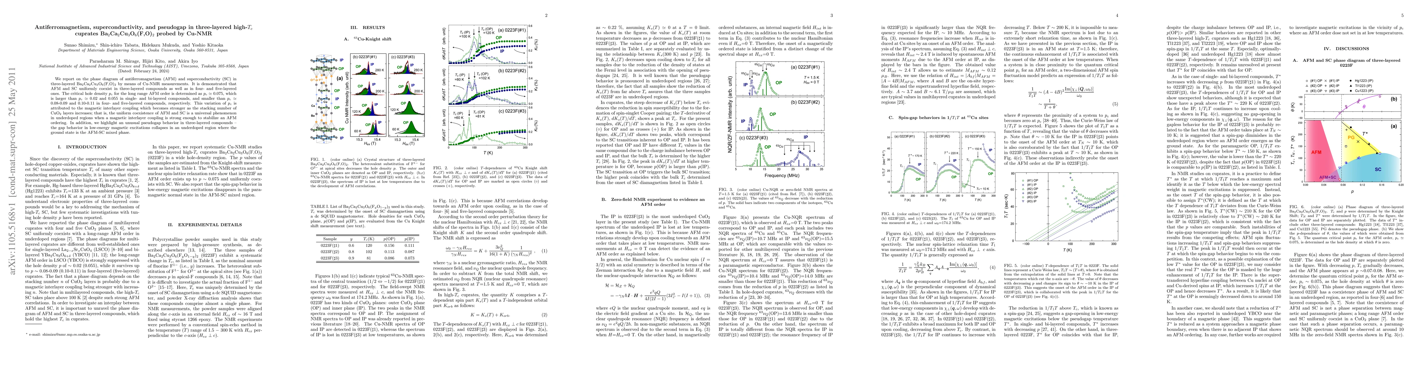 This paper uses Cu-NMR to investigate the coexistence of antiferromagnetism and superconductivity in three-layered Ba_2Ca_2Cu_3O_6(F,O)_2, finding it universally present when strong magnetic interlayer coupling is present. It also notes an unusual pseudogap behavior in three-layered compounds where the gap collapses under certain doping conditions.