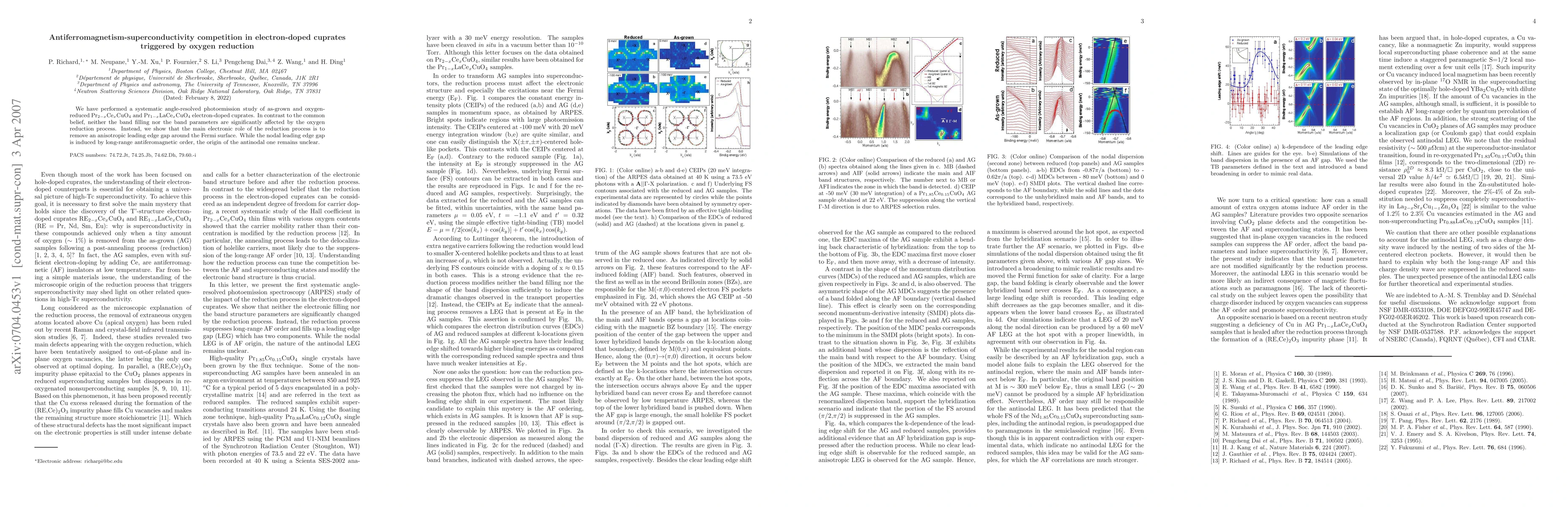 This study reveals that oxygen reduction in electron-doped cuprates like Pr$_{2-x}$Ce$_x$CuO$_4$ and Pr$_{1-x}$LaCe$_{x}$CuO$_4$ primarily removes an anisotropic leading edge gap around the Fermi surface, rather than significantly altering band filling or parameters. The reduction process triggers competition between antiferromagnetism and superconductivity, with the nodal gap linked to antiferromagnetic order.
