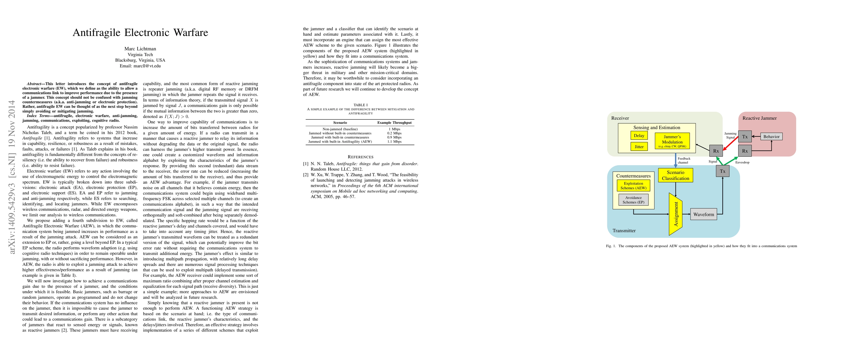 This paper introduces antifragile electronic warfare, a novel concept where communications links improve performance in the presence of jammers, going beyond traditional jamming countermeasures. An example strategy is provided to illustrate this advanced approach.