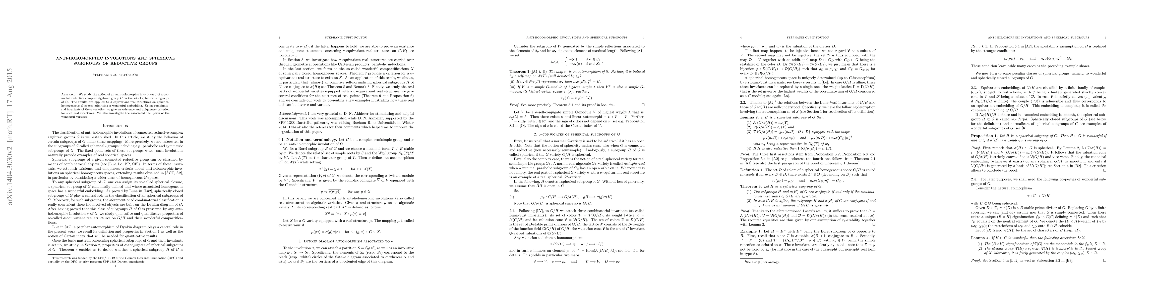 We investigate qualitative and quantitative properties of anti-holomorphic involutions on some spherical varieties.