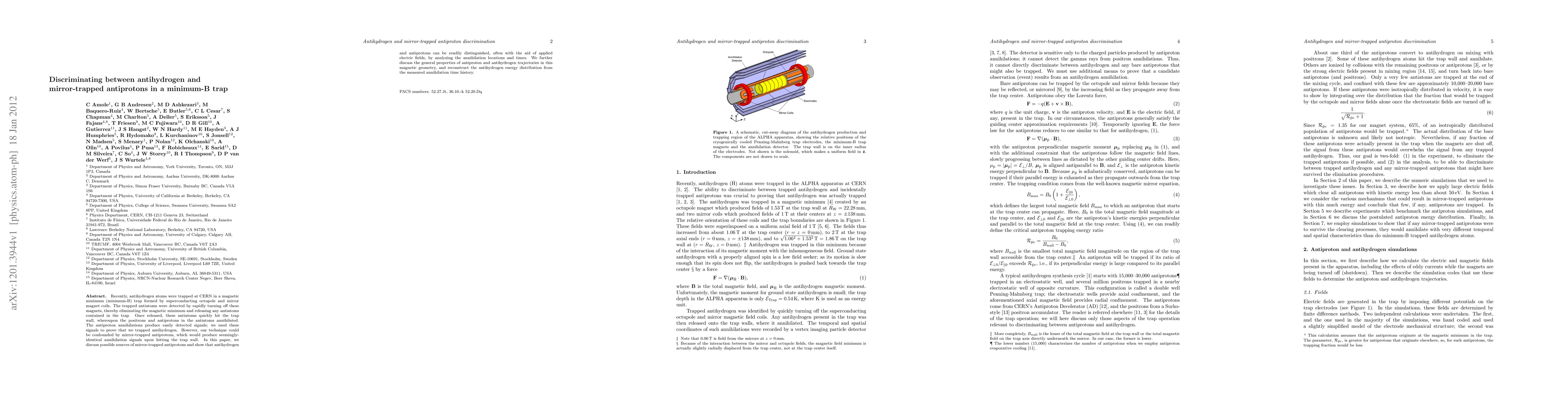 This paper discusses the discrimination between trapped antihydrogen and mirror-trapped antiprotons in a minimum-B trap, using annihilation signals to identify antihydrogen. The study reveals methods to distinguish these particles by analyzing their annihilation locations and times, often aided by electric fields.