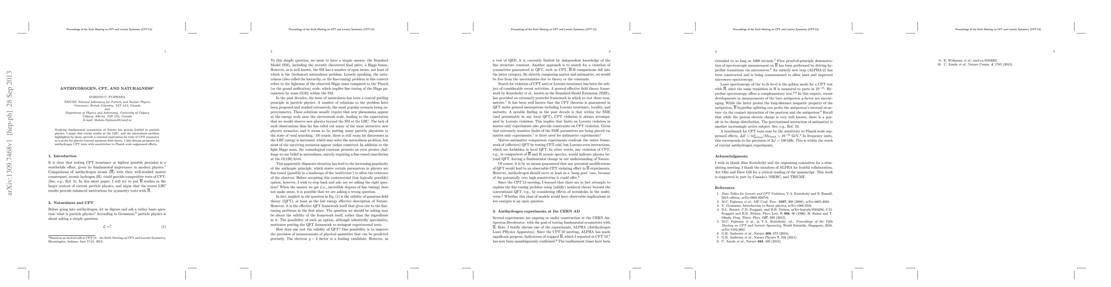 This paper argues that LHC results and the naturalness problem motivate tests of CPT symmetry to explore physics beyond quantum field theory, with a focus on antihydrogen experiments that could detect Planck scale suppressed effects.