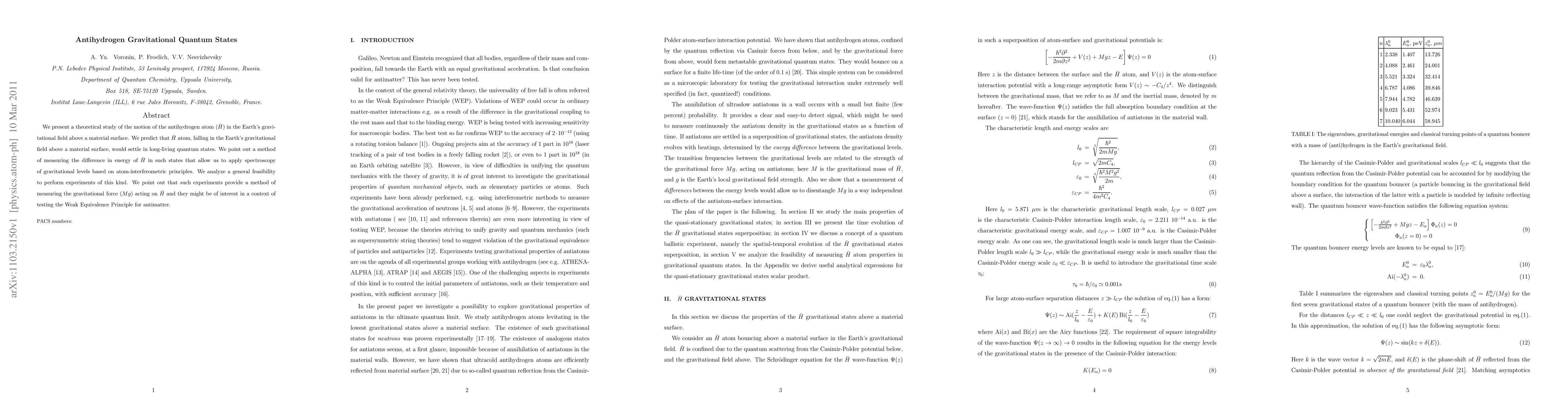 This paper theoretically explores the gravitational quantum states of antihydrogen ($\bar{H}$) in Earth's gravitational field, predicting its long-living quantum states and proposing a spectroscopic method for measuring energy differences. It discusses the feasibility of experiments to test the gravitational force on $\bar{H}$ and its implications for the Weak Equivalence Principle for antimatter.