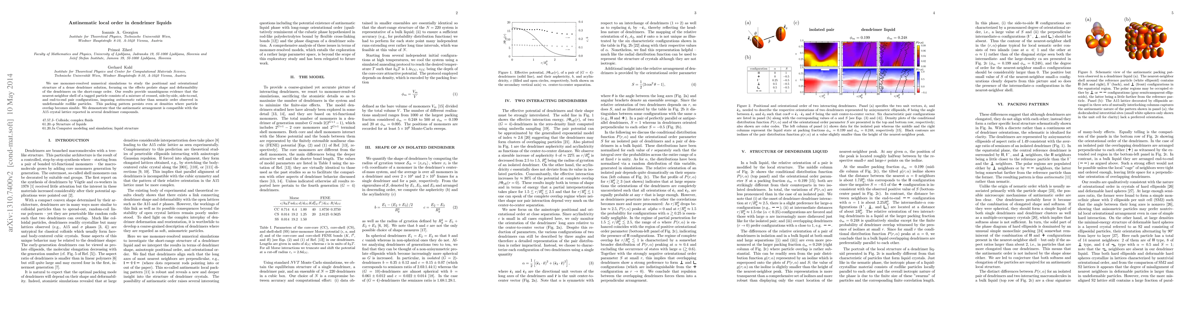 We use monomer-resolved numerical simulations to study the positional and orientational structure of a dense dendrimer solution, focusing on the effects of dendrimers' prolate shape and deformability on the short-range order. Our results provide unambiguous evidence that the nearest-neighbor shell of a tagged particle consists of a mixture of crossed, side-by-side, side-to-end, and end-to-end pair configurations, imposing antinematic rather than nematic order observed in undeformable rodlike particles. This packing pattern persists even at densities where particle overlap becomes sizable. We demonstrate that the antinematic arrangement is compatible with the A15 crystal lattice reported in several dendrimer compounds.