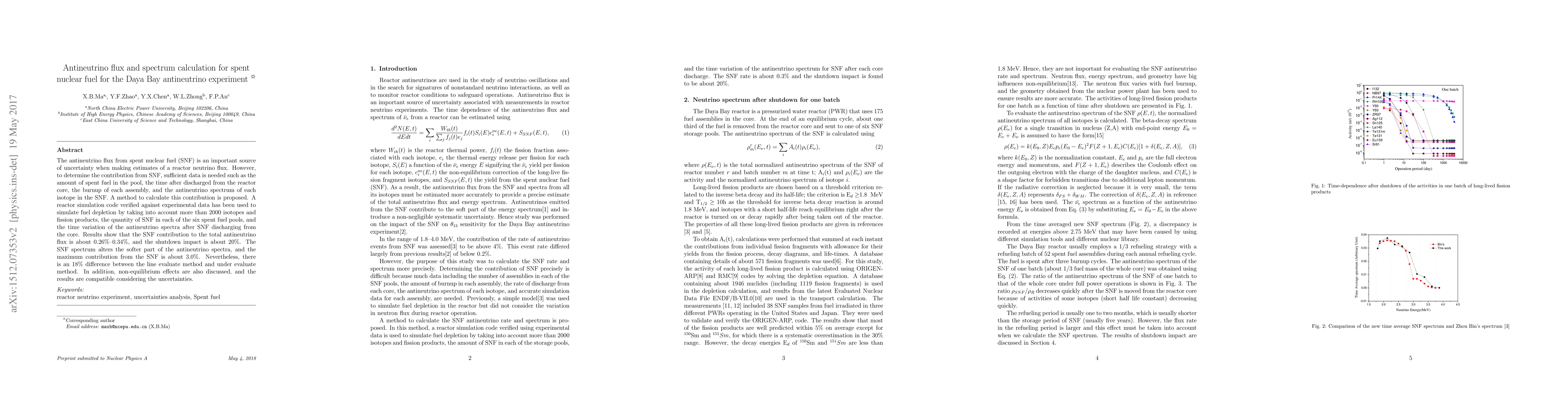 This paper proposes a method to calculate the antineutrino flux from spent nuclear fuel (SNF) for the Daya Bay experiment, using reactor simulation code. The study finds that SNF contributes about 0.26%~0.34% to the total antineutrino flux, with shutdown impacts around 20%, and highlights the importance of considering non-equilibrium effects and the varying antineutrino spectrum over time.