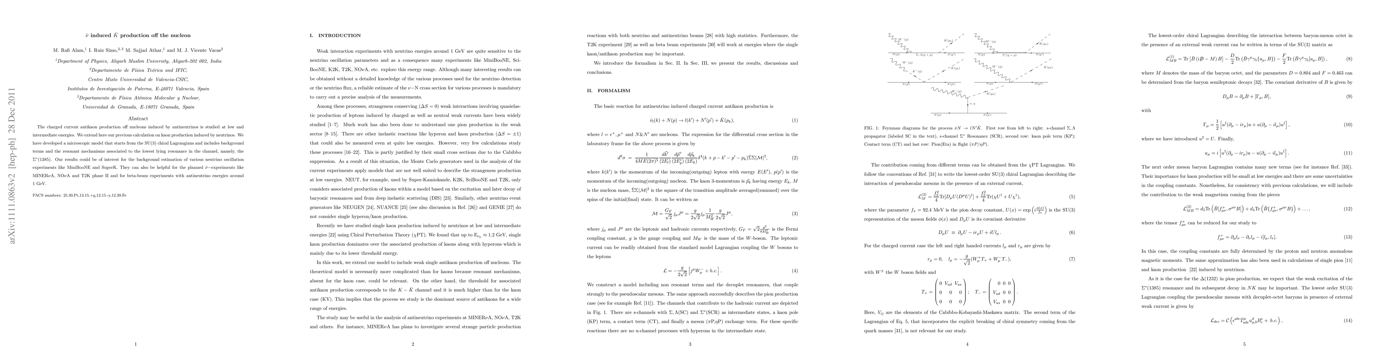 The charged current antikaon production off nucleons induced by antineutrinos is studied at low and intermediate energies. We extend here our previous calculation on kaon production induced by neutrinos. We have developed a microscopic model that starts from the SU(3) chiral Lagrangians and includes background terms and the resonant mechanisms associated to the lowest lying resonance in the channel, namely, the Sigma*(1385). Our results could be of interest for the background estimation of various neutrino oscillation experiments like MiniBooNE and SuperK. They can also be helpful for the planned antineutrino experiments like MINERvA, NOvA and T2K phase II and for beta-beam experiments with antineutrino energies around 1 GeV.
