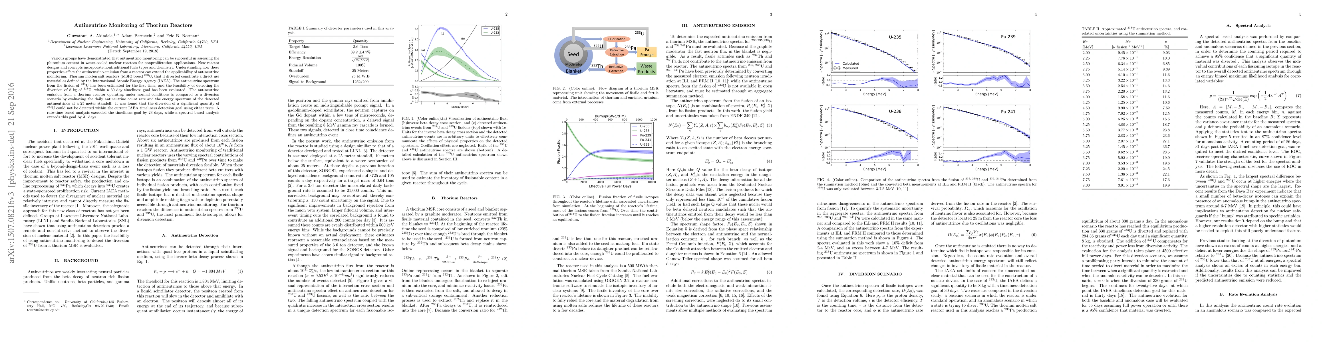 Various groups have demonstrated that antineutrino monitoring can be successful in assessing the plutonium content in water-cooled nuclear reactors for nonproliferation applications. New reactor designs and concepts incorporate nontraditional fuels types and chemistry. Understanding how these properties affect the antineutrino emission from a reactor can extend the applicability of antineutrino monitoring. Thorium molten salt reactors (MSR) breed U-233, that if diverted constitute a direct use material as defined by the International Atomic Energy Agency (IAEA). The antineutrino spectrum from the fission of U-233 has been estimated for the first time, and the feasibility of detecting the diversion of 8 kg of U-233, within a 30 day timeliness goal has been evaluated. The antineutrino emission from a thorium reactor operating under normal conditions is compared to a diversion scenario by evaluating the daily antineutrino count rate and the energy spectrum of the detected antineutrinos at a 25 meter standoff. It was found that the diversion of a significant quantity of U-233 could not be detected within the current IAEA timeliness detection goal using either tests. A rate-time based analysis exceeded the timeliness goal by 23 days, while a spectral based analysis exceeds this goal by 31 days.