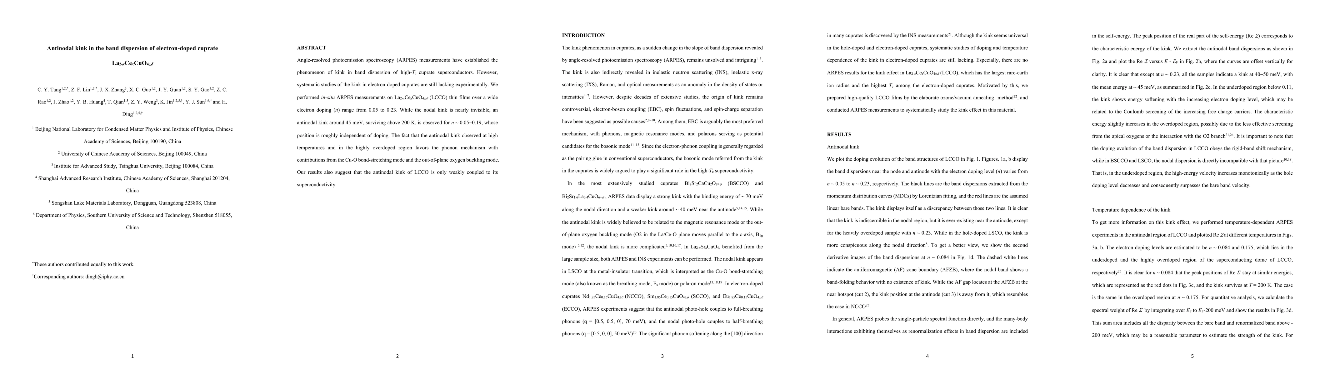 This study utilized in-situ angle-resolved photoemission spectroscopy (ARPES) to observe an antinodal kink in the band dispersion of electron-doped cuprate La₂₋ₓCeₓCuO₄±δ, indicating a phonon-related mechanism. The kink persists at high temperatures and across various doping levels, suggesting minimal coupling with superconductivity.