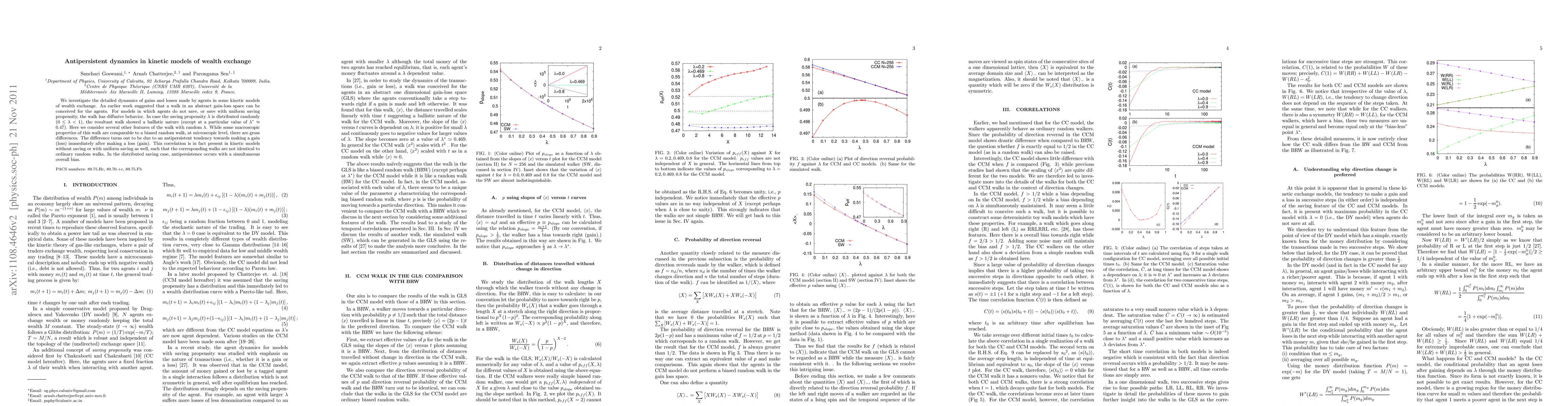 We investigate the detailed dynamics of gains and losses made by agents in some kinetic models of wealth exchange. The concept of a walk in an abstract gain-loss space for the agents had been introduced in an earlier work. For models in which agents do not save, or save with uniform saving propensity, this walk has diffusive behavior. In case the saving propensity $\lambda$ is distributed randomly ($0 \leq \lambda < 1$), the resultant walk showed a ballistic nature (except at a particular value of $\lambda^* \approx 0.47$). Here we consider several other features of the walk with random $\lambda$. While some macroscopic properties of this walk are comparable to a biased random walk, at microscopic level, there are gross differences. The difference turns out to be due to an antipersistent tendency towards making a gain (loss) immediately after making a loss (gain). This correlation is in fact present in kinetic models without saving or with uniform saving as well, such that the corresponding walks are not identical to ordinary random walks. In the distributed saving case, antipersistence occurs with a simultaneous overall bias.