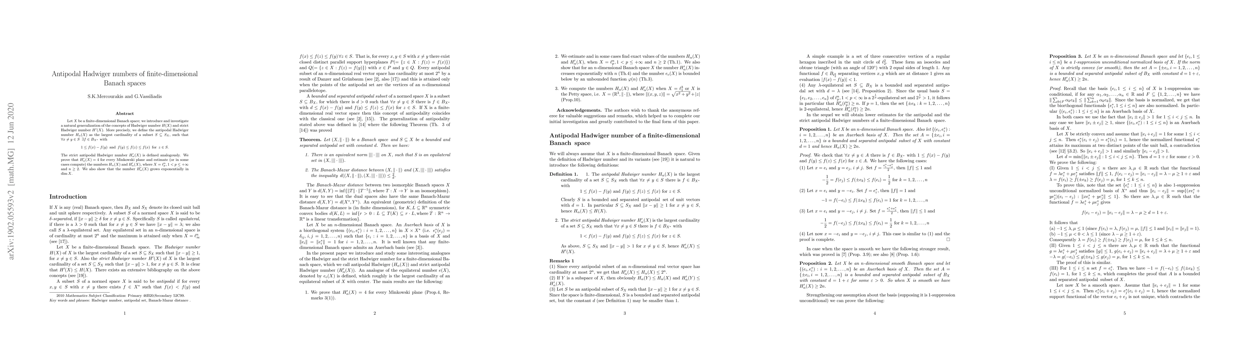 This paper generalizes the Hadwiger number for finite-dimensional Banach spaces by introducing antipodal Hadwiger numbers and strict antipodal Hadwiger numbers, proving that the strict version equals 4 for Minkowski planes and showing exponential growth in dimension.