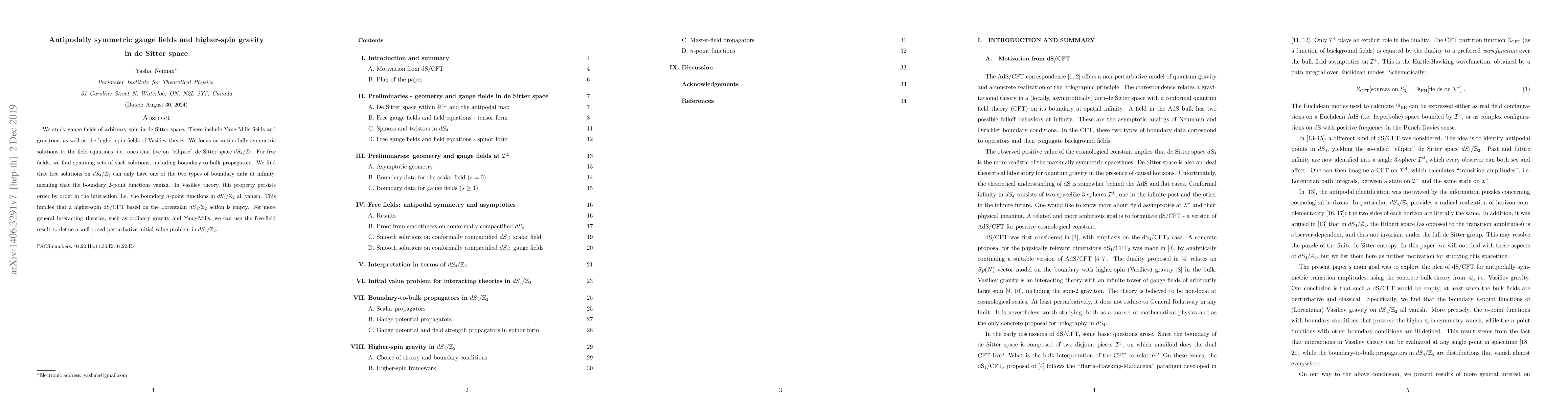 This paper investigates gauge fields of various spins in de Sitter space, focusing on antipodally symmetric solutions on "elliptic" de Sitter space. It finds that free fields on this space exhibit vanishing boundary n-point functions, implying an empty higher-spin dS/CFT, while providing a perturbative initial value problem for more general interacting theories.