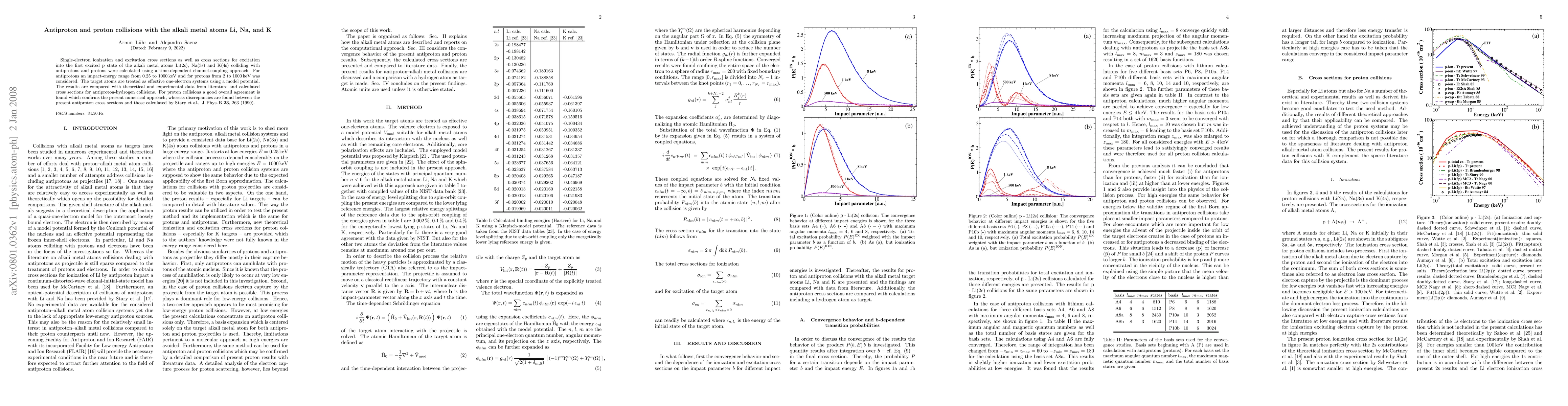 This paper calculates single-electron ionization and excitation cross sections for Li, Na, and K atoms colliding with antiprotons and protons over specified energy ranges, using a time-dependent channel-coupling approach. The results show good agreement with proton collision data but discrepancies with previous antiproton calculations.