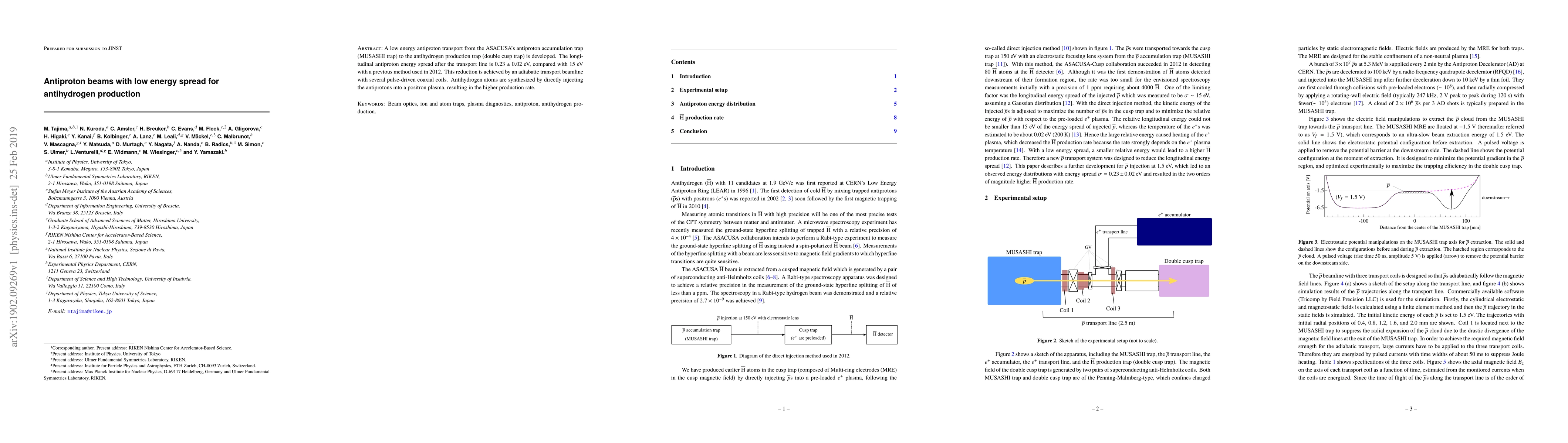 This paper details the development of a low energy spread antiproton beam transport system for antihydrogen production, achieving a significant reduction in energy spread from 15 eV to 0.23 ± 0.02 eV using an adiabatic transport line with pulse-driven coaxial coils, leading to enhanced antihydrogen synthesis.