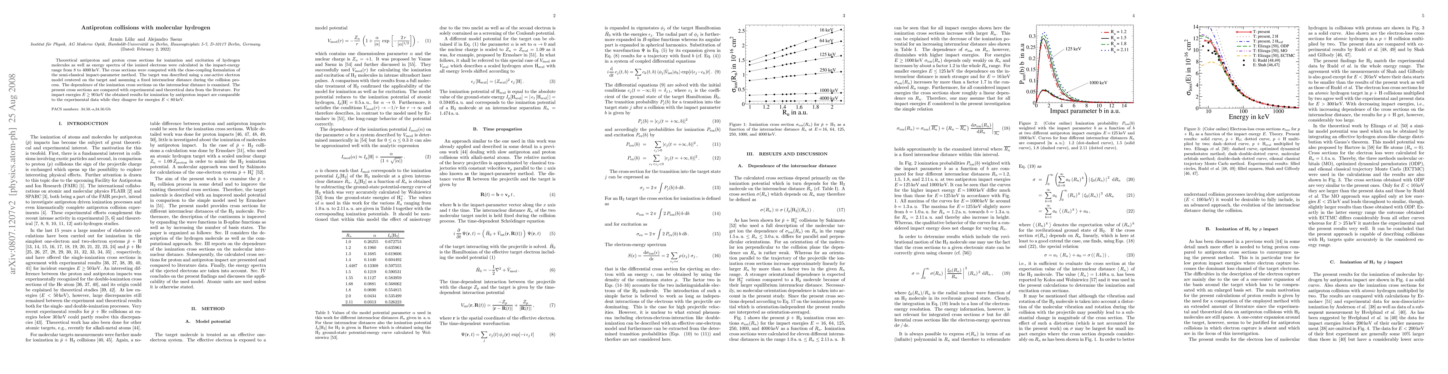 This paper calculates theoretical antiproton and proton cross sections for ionization and excitation of molecular hydrogen, finding comparable results to experimental data for high energies but discrepancies at lower energies. The study uses a close-coupling method and a one-active electron model, examining the dependence on internuclear distance.