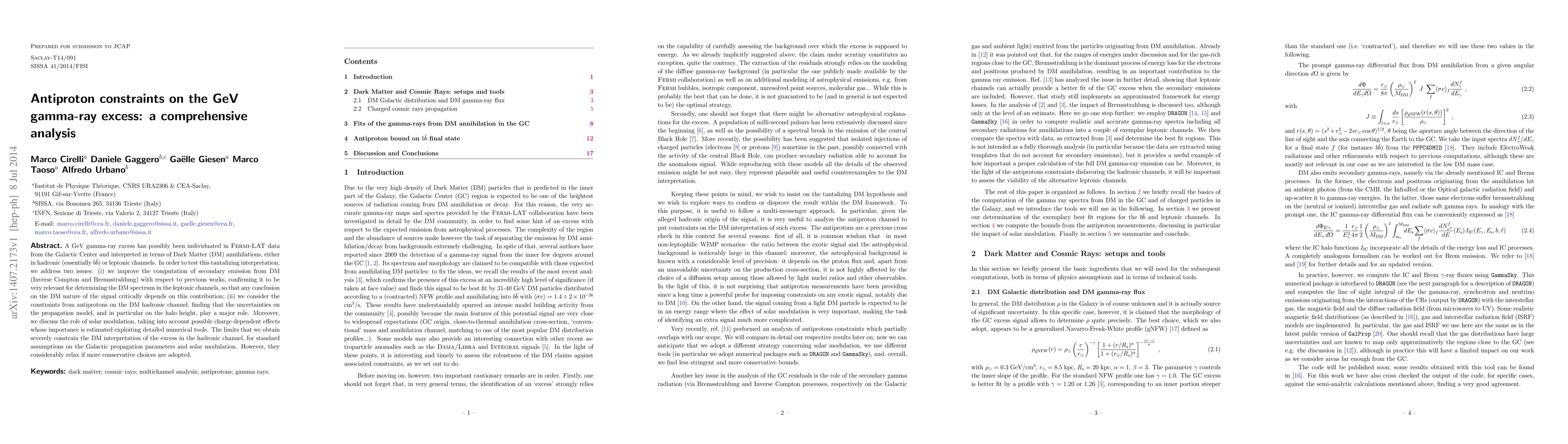 This paper improves calculations of secondary emission from Dark Matter and applies antiproton constraints to test the Dark Matter interpretation of a GeV gamma-ray excess from the Galactic Center. The findings suggest that uncertainties in propagation models significantly impact these constraints, and more conservative assumptions relax limitations on the Dark Matter hypothesis.