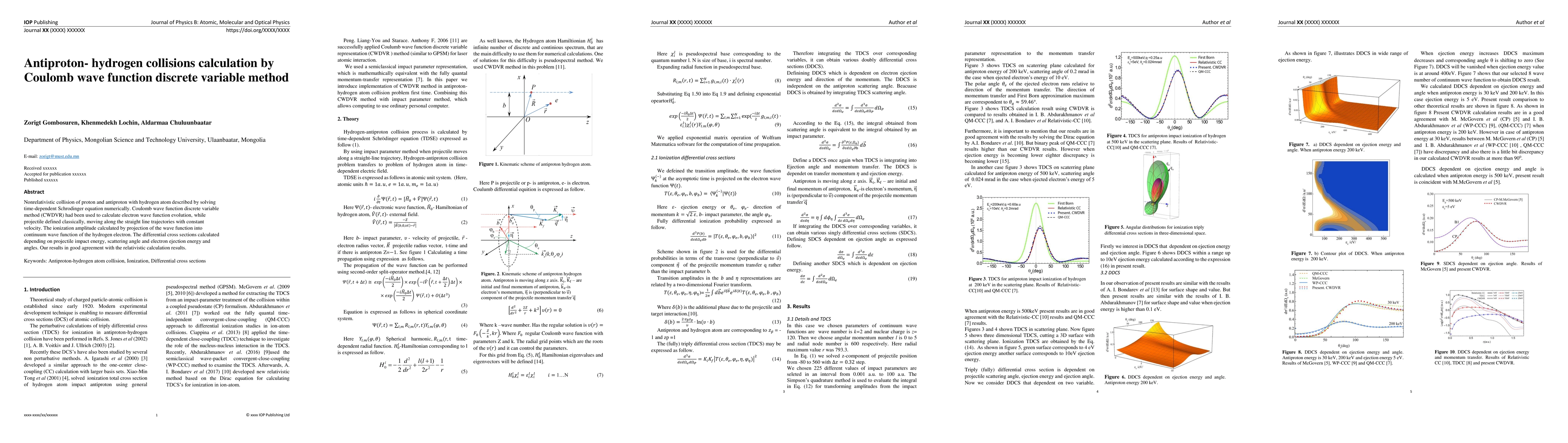 This paper numerically solves the time-dependent Schrödinger equation to study nonrelativistic antiproton-hydrogen collisions using the Coulomb wave function discrete variable method (CWDVR). The results show good agreement with relativistic calculations for ionization amplitudes and differential cross sections.