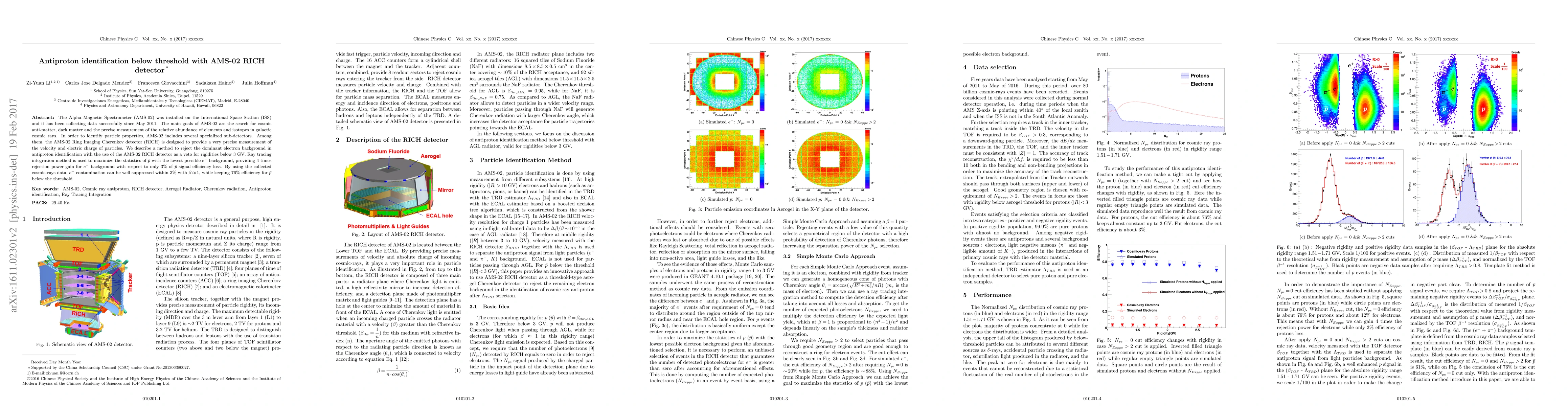 The research utilizes the AMS-02 RICH detector to identify antiprotons below the threshold of 3 GV by employing a method that uses the RICH detector as a veto for rigidities below this value. The ray tracing integration method is applied to maximize antiproton statistics while minimizing electron background, achieving a fourfold increase in rejection power for electrons with only a 3% loss in antiproton signal efficiency.