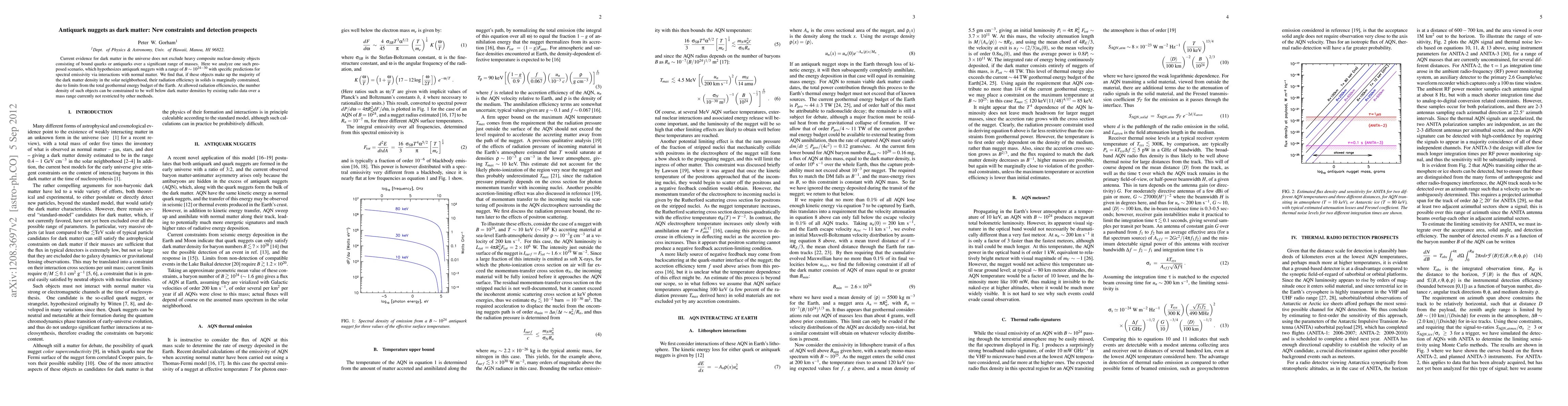 Current evidence for dark matter in the universe does not exclude heavy composite nuclear-density objects consisting of bound quarks or antiquarks over a significant range of masses. Here we analyze one such proposed scenario, which hypothesizes antiquark nuggets with a range of log10(B) = 24-30 with specific predictions for spectral emissivity via interactions with normal matter. We find that, if these objects make up the majority of the dark matter density in the solar neighborhood, their radiation efficiency in solids is marginally constrained, due to limits from the total geothermal energy budget of the Earth. At allowed radiation efficiencies, the number density of such objects can be constrained to be well below dark matter densities by existing radio data over a mass range currently not restricted by other methods.