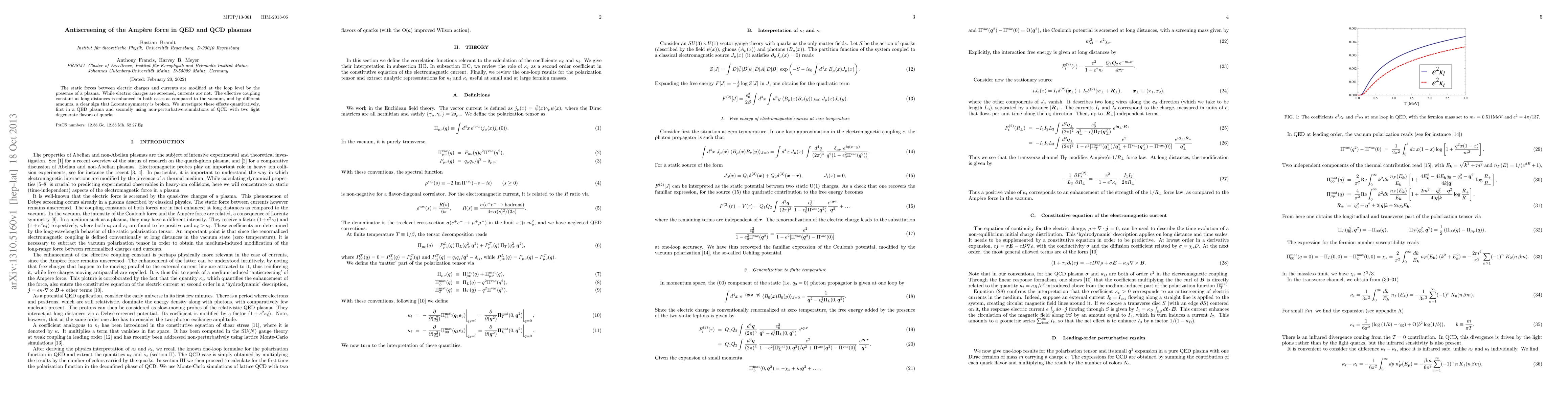 The static forces between electric charges and currents are modified at the loop level by the presence of a plasma. While electric charges are screened, currents are not. The effective coupling constant at long distances is enhanced in both cases as compared to the vacuum, and by different amounts, a clear sign that Lorentz symmetry is broken. We investigate these effects quantitatively, first in a QED plasma and secondly using non-perturbative simulations of QCD with two light degenerate flavors of quarks.