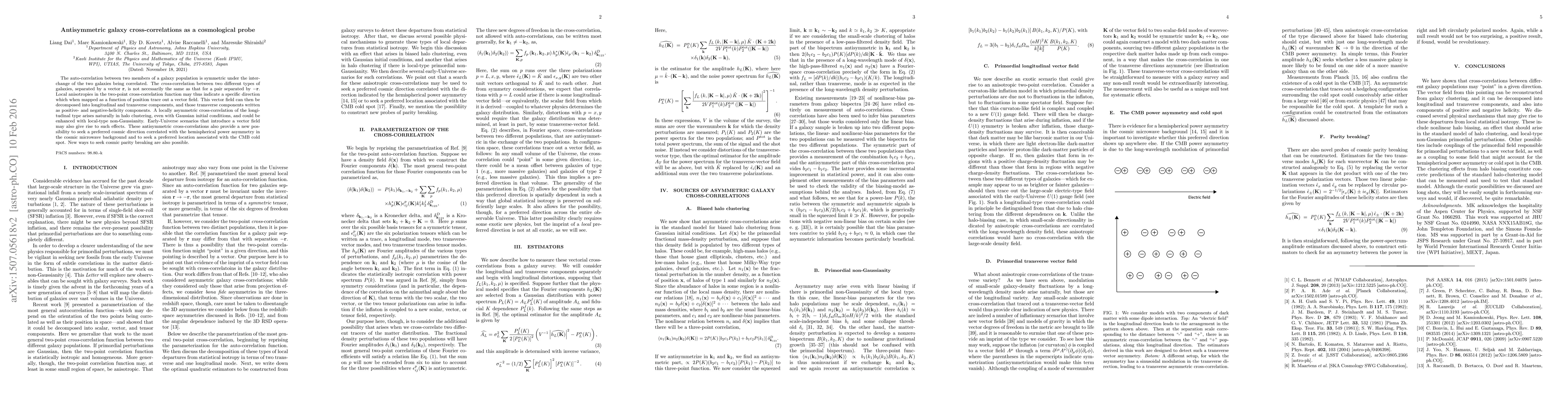 The auto-correlation between two members of a galaxy population is symmetric under the interchange of the two galaxies being correlated. The cross-correlation between two different types of galaxies, separated by a vector $\bf{r}$, is not necessarily the same as that for a pair separated by $-\bf{r}$. Local anisotropies in the two-point cross-correlation function may thus indicate a specific direction which when mapped as a function of position trace out a vector field. This vector field can then be decomposed into longitudinal and transverse components, and those transverse components written as positive- and negative-helicity components. A locally asymmetric cross-correlation of the longitudinal type arises naturally in halo clustering, even with Gaussian initial conditions, and could be enhanced with local-type non-Gaussianity. Early-Universe scenarios that introduce a vector field may also give rise to such effects. These antisymmetric cross-correlations also provide a new possibility to seek a preferred cosmic direction correlated with the hemispherical power asymmetry in the cosmic microwave background and to seek a preferred location associated with the CMB cold spot. New ways to seek cosmic parity breaking are also possible.
