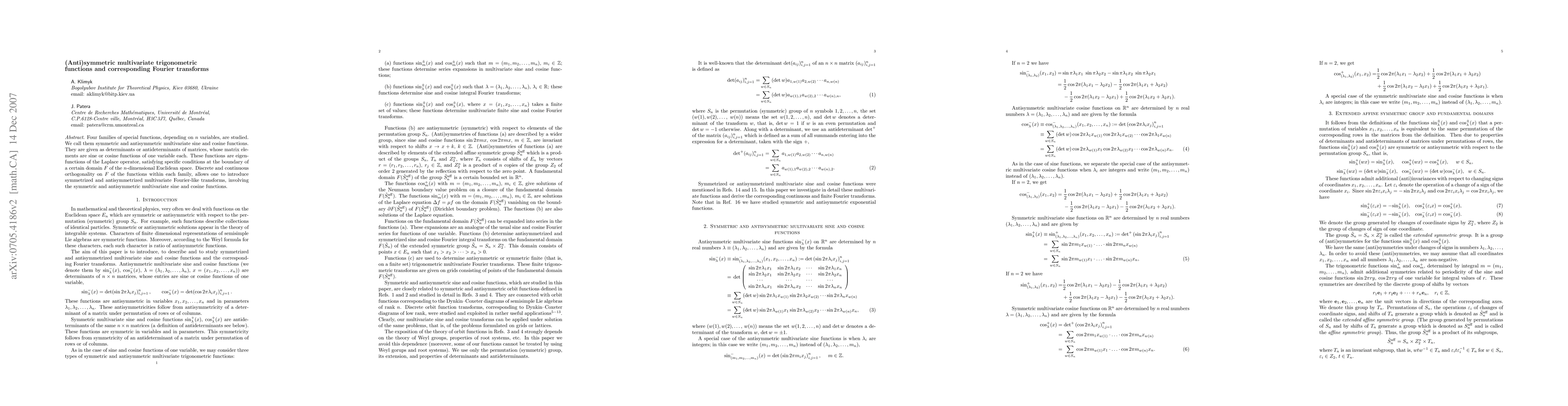 This paper explores four families of symmetric and antisymmetric multivariate trigonometric functions, defined as determinants or antideterminants of matrices. These functions serve as eigenfunctions of the Laplace operator and enable the introduction of symmetrized and antisymmetrized multivariate Fourier-like transforms based on their orthogonality properties.