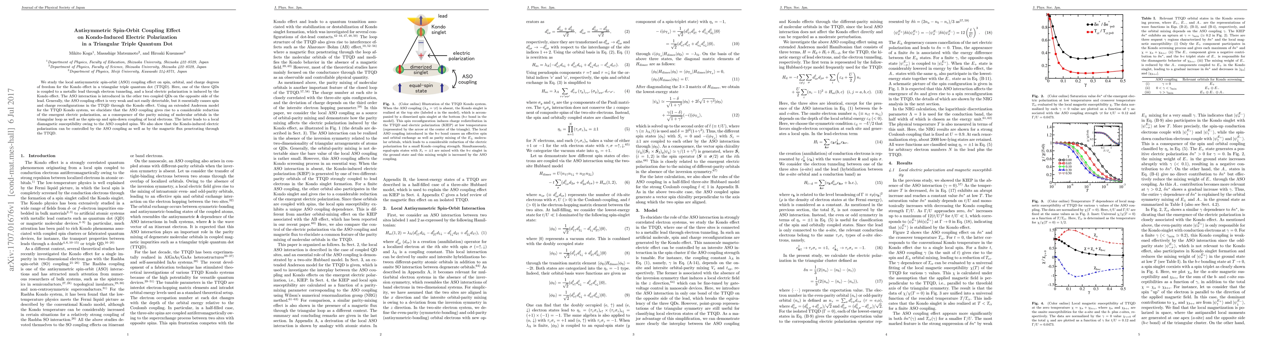 This paper investigates how antisymmetric spin-orbit coupling affects the Kondo effect in a triangular triple quantum dot, revealing that it significantly reduces the Kondo-induced electric polarization due to spin and charge reconfigurations, and can be controlled by magnetic flux.