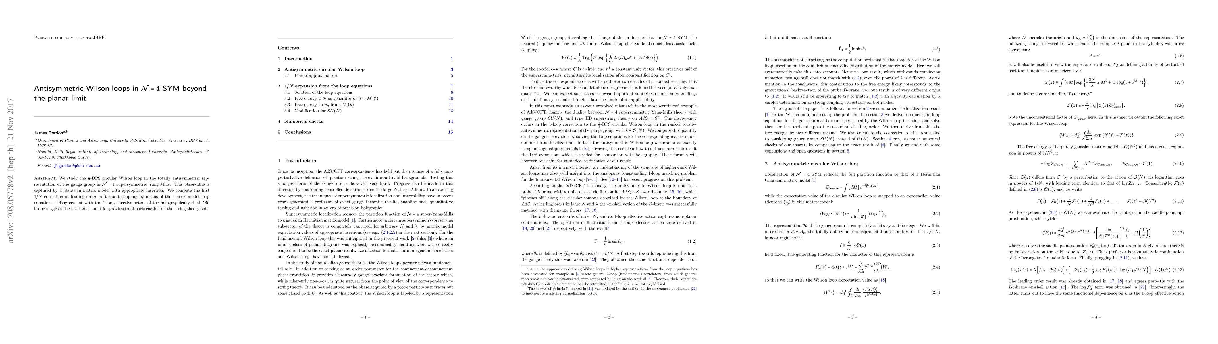 Summary: This study computes the first non-planar correction to the $\frac{1}{2}$-BPS antisymmetric Wilson loop in $\mathcal{N}=4$ SYM, revealing a discrepancy that suggests gravitational backreaction effects need to be considered in string theory.