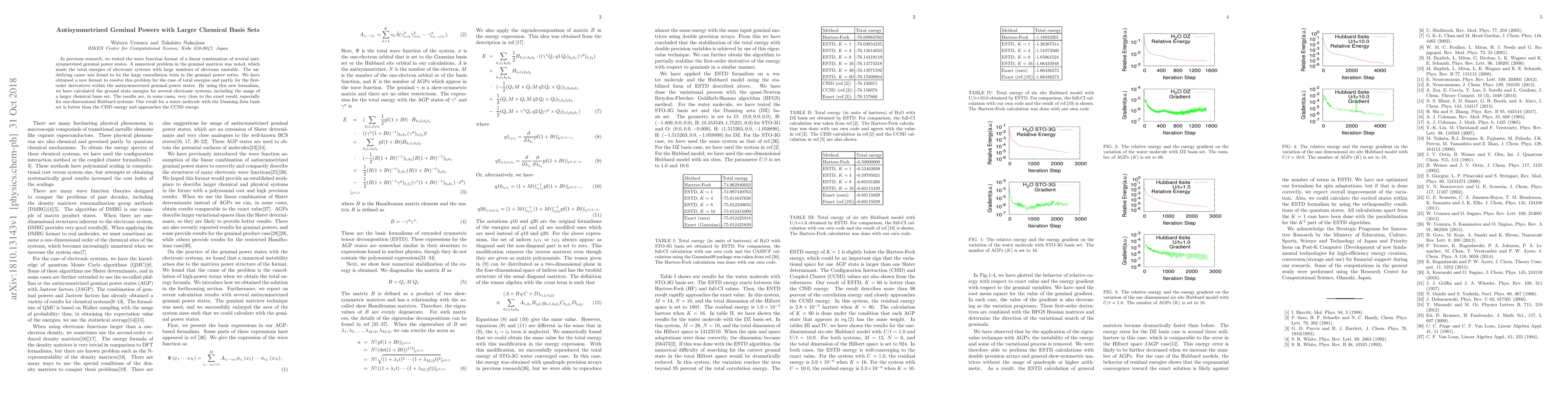 In previous research, we tested the wave function format of a linear combination of several antisymmetrized geminal power states. A numerical problem in the geminal matrices was noted, which made the total energies of electronic systems with large numbers of electrons unstable. The underlying cause was found to be the large cancellation term in the geminal power series. We have obtained a new format to resolve this problem for the case of total energies and partly for the first-order derivatives within the antisymmetrized geminal power states. By using this new formalism, we have calculated the ground state energies for several electronic systems, including the usage of a larger chemical basis set. The results are, in some cases, very close to the exact result, especially for one-dimensional Hubbard systems. Our result for a water molecule with the Dunning Zeta basis set is better than the CISD energy and approaches the CCSD energy.