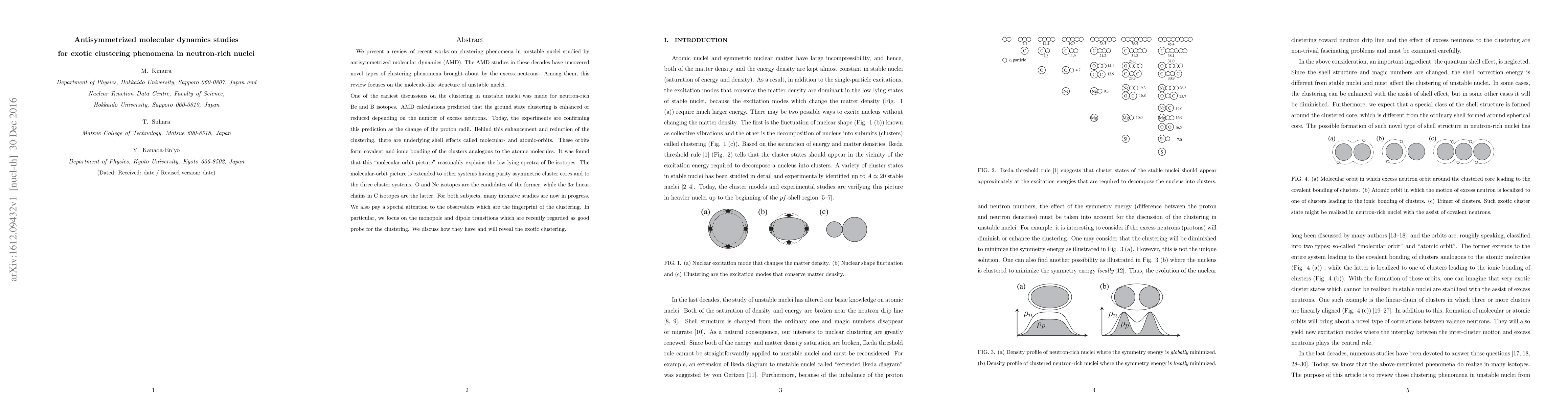 This review examines recent antisymmetrized molecular dynamics (AMD) studies on clustering phenomena in neutron-rich nuclei, highlighting the molecule-like structures and the influence of excess neutrons. It emphasizes the "molecular-orbit picture" to explain the low-lying spectra and clustering behaviors, with a focus on observables like monopole and dipole transitions as key indicators of these phenomena.