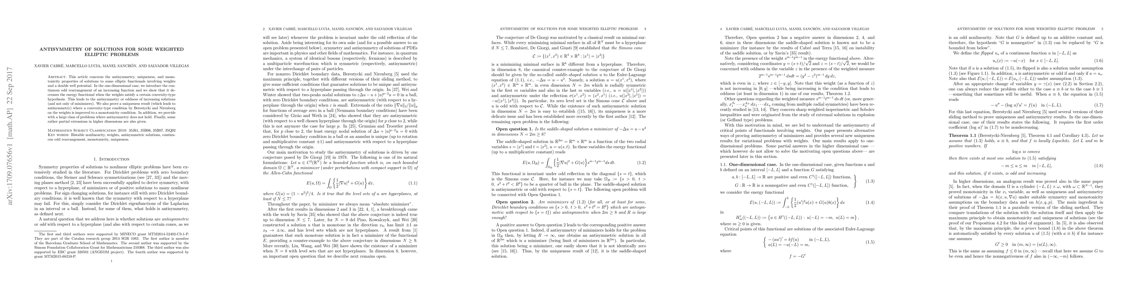 This paper explores the antisymmetry, uniqueness, and monotonicity of solutions to weighted elliptic problems with a double well potential. It demonstrates that under certain conditions, increasing solutions exhibit antisymmetry, not just minimizers, and provides a uniqueness result improved by a monotonicity condition.