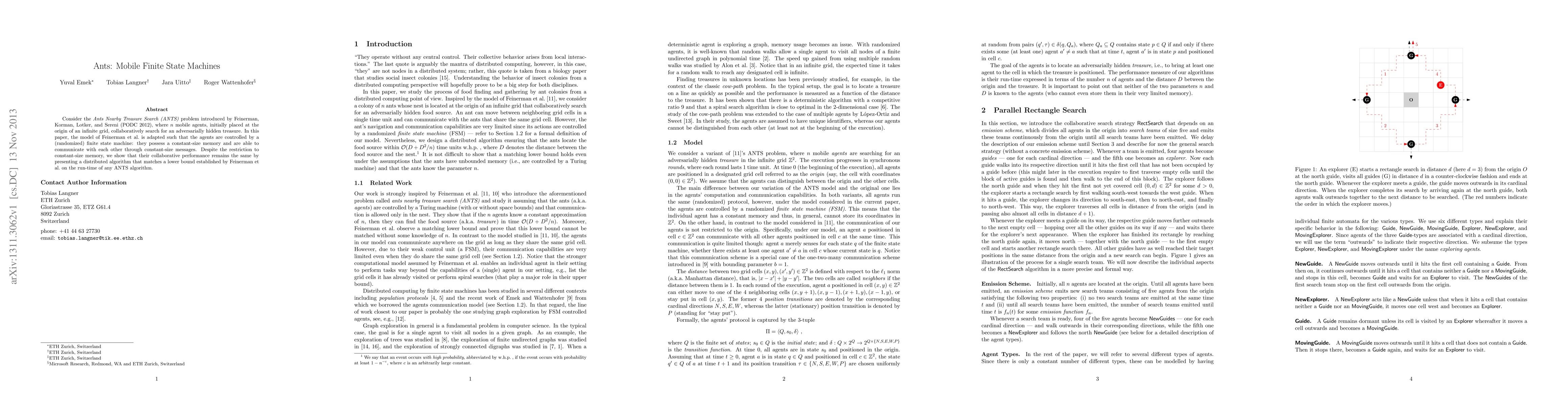 Consider the Ants Nearby Treasure Search (ANTS) problem introduced by Feinerman, Korman, Lotker, and Sereni (PODC 2012), where $n$ mobile agents, initially placed at the origin of an infinite grid, collaboratively search for an adversarially hidden treasure. In this paper, the model of Feinerman et al. is adapted such that the agents are controlled by a (randomized) finite state machine: they possess a constant-size memory and are able to communicate with each other through constant-size messages. Despite the restriction to constant-size memory, we show that their collaborative performance remains the same by presenting a distributed algorithm that matches a lower bound established by Feinerman et al. on the run-time of any ANTS algorithm.