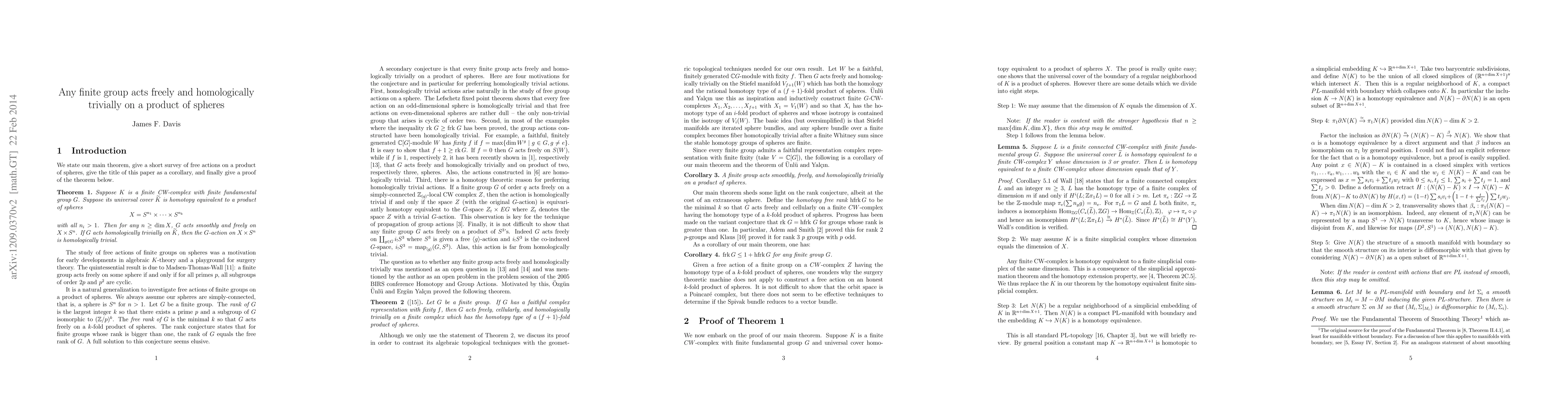 Summary: The paper proves that any finite group G, given a finite CW complex K with G as its fundamental group and a universal cover homotopy equivalent to a product of spheres, can act smoothly and freely on a product X x S^n for sufficiently large n, while maintaining a homologically trivial action if it is trivial on the universal cover.