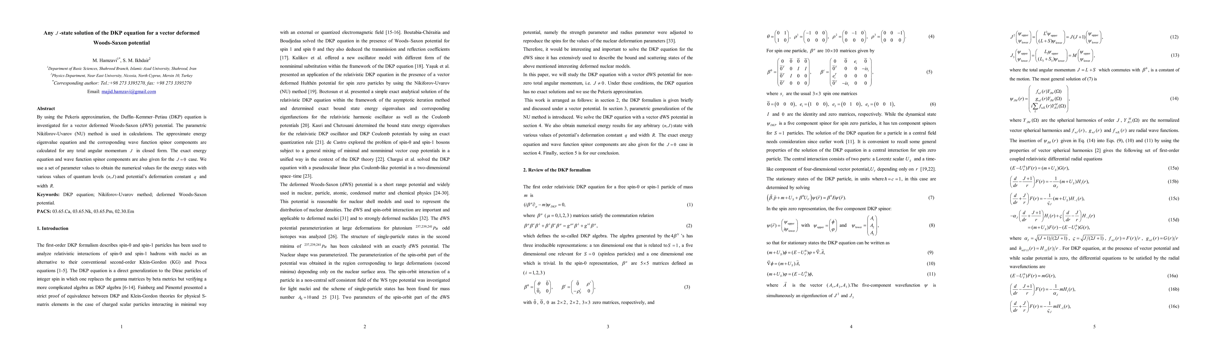 This paper investigates the Duffin-Kemmer-Petiau (DKP) equation for a vector deformed Woods-Saxon potential using the Pekeris approximation and the parametric Nikiforov-Uvarov method. It provides closed-form expressions for energy eigenvalues and wave function spinor components for any total angular momentum J, and numerical results for various quantum levels and potential parameters.