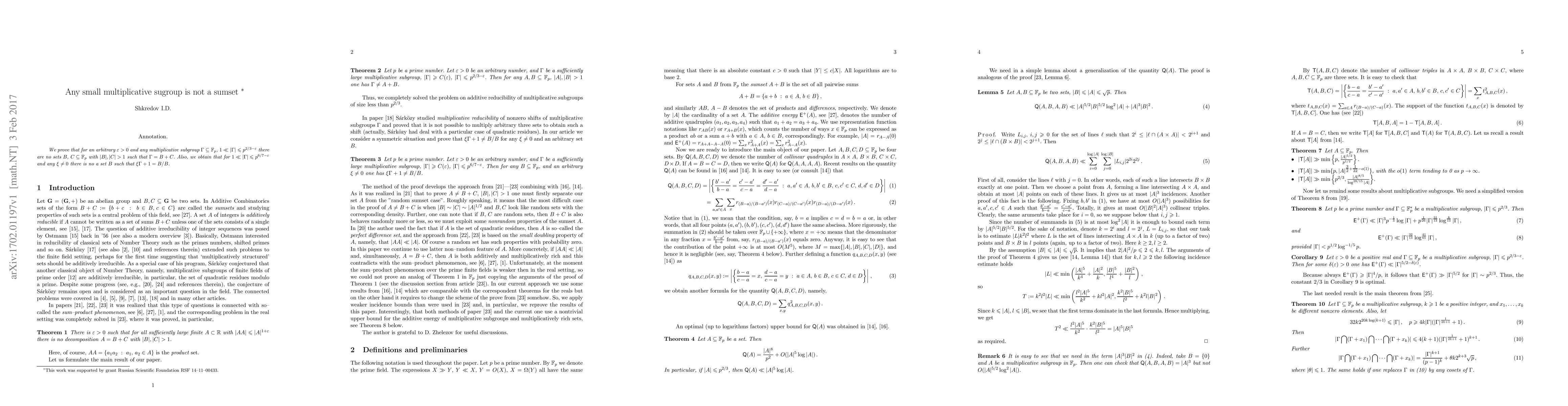 This research paper proves that for certain types of mathematical sets called multiplicative subgroups, there are no other sets that can be formed by adding two smaller sets together, under specific conditions.