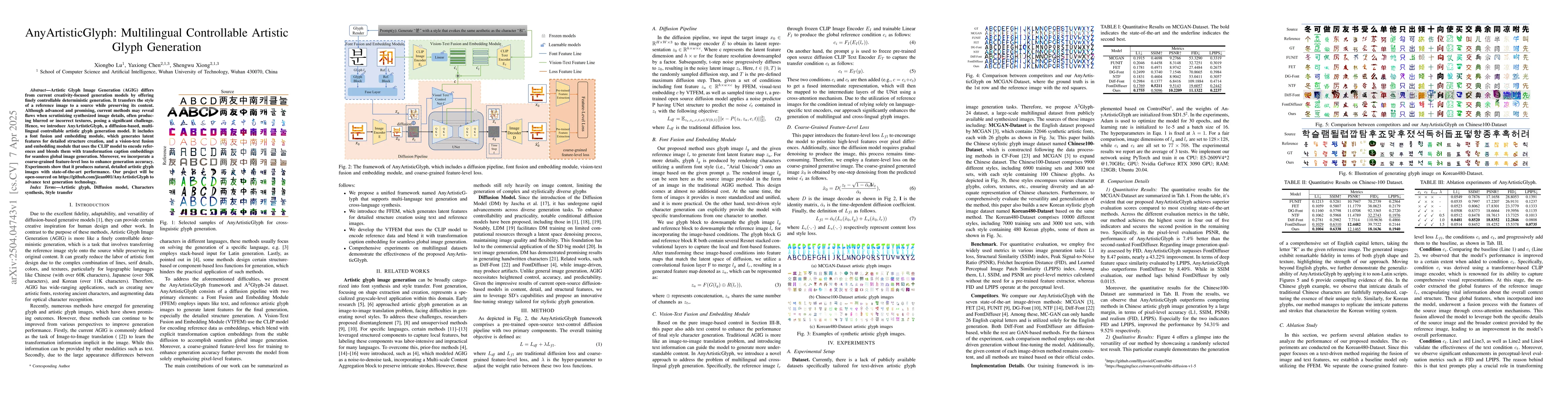 The paper introduces AnyArtisticGlyph, a multilingual, diffusion-based model for controllable artistic glyph generation that combines style transfer and content preservation. It employs advanced modules for latent feature generation and vision-text fusion, achieving high-fidelity, detailed artistic glyphs with state-of-the-art performance.