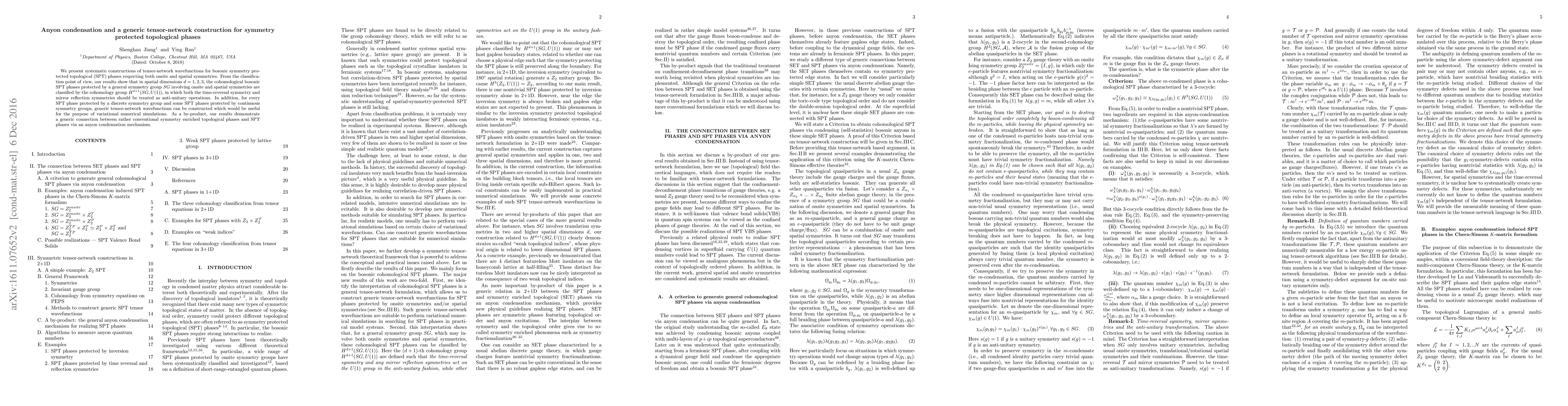 This paper systematically constructs tensor-network wavefunctions for bosonic symmetry protected topological phases, showing classification by the cohomology group $H^{d+1}(SG,U(1))$. It also establishes a connection between symmetry enriched topological phases and SPT phases through anyon condensation.