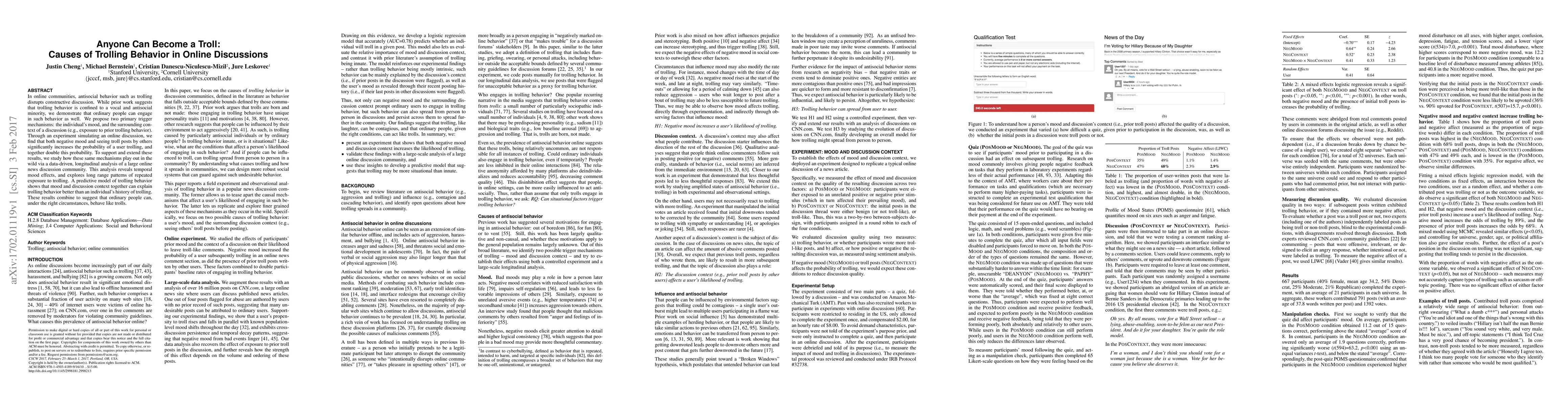 This study reveals that ordinary individuals can engage in trolling behavior due to negative mood and contextual factors like exposure to prior troll posts, rather than just a vocal minority. Experimental and longitudinal analyses show that mood and discussion context together significantly increase the likelihood of trolling, suggesting that anyone can become a troll under the right conditions.