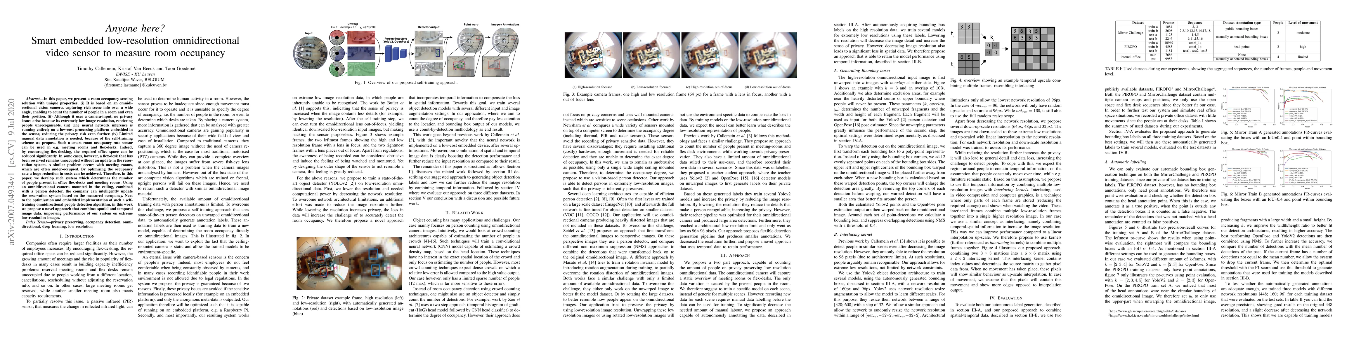 A low-resolution omnidirectional camera is used to detect people in rooms with minimal privacy risk due to its extremely low image resolution. The system can optimise occupancy rates and reduce costs for office space by intelligently updating reservation systems.