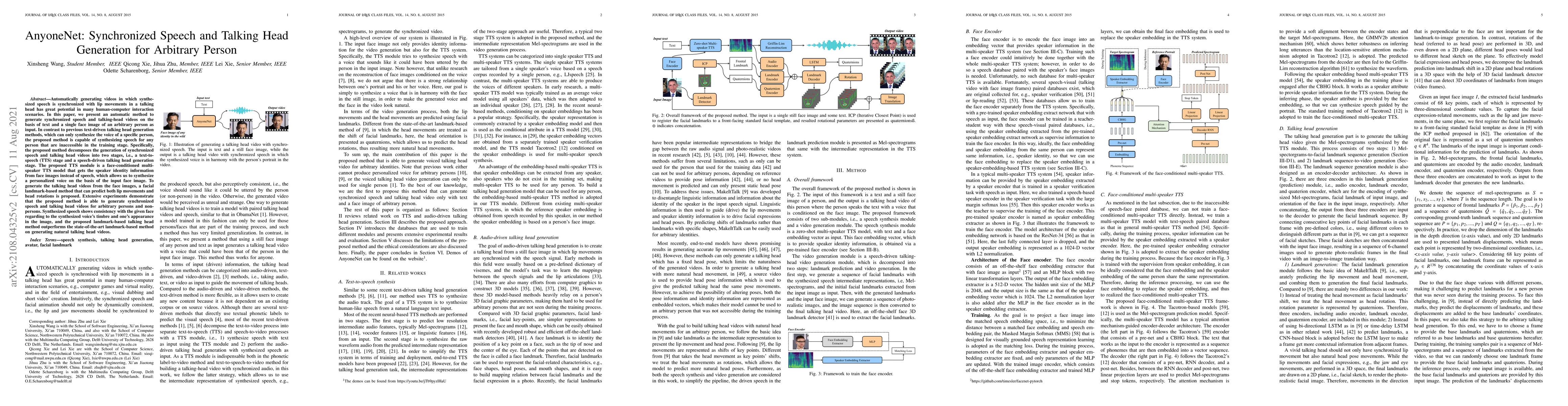 The paper introduces AnyoneNet, an automatic method for generating synchronized speech and talking head videos based on text and a single face image of any person. Unlike previous methods, it uses a face-conditioned multi-speaker TTS model and a facial landmark-based approach to synthesize personalized voices and natural talking head videos, achieving state-of-the-art performance.