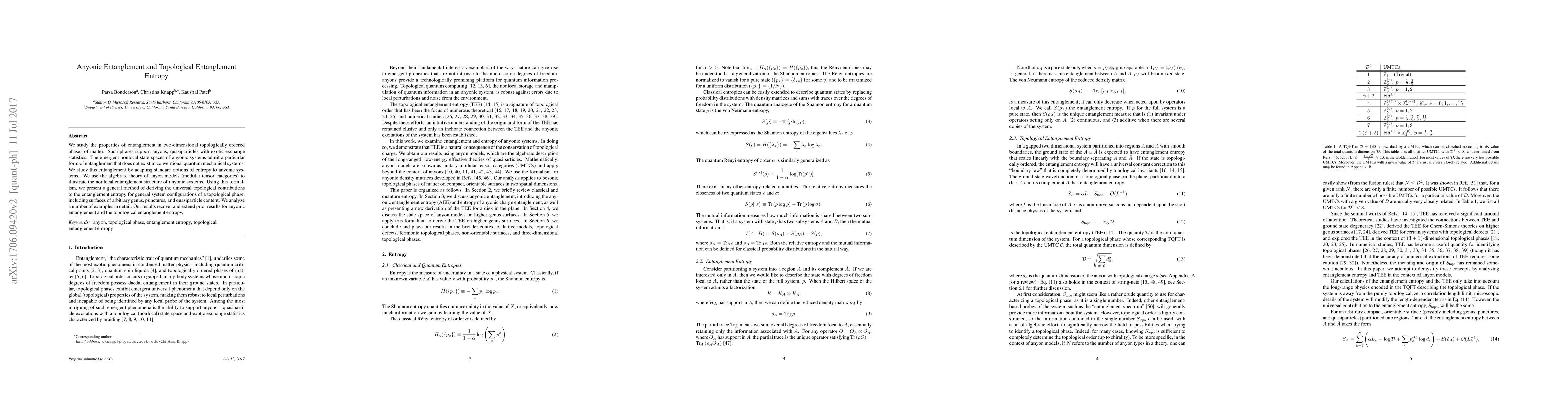 The paper presents a systematic approach to calculating topological entanglement entropy in anyonic systems using modular tensor categories and adapting entropy concepts to anyonic systems.