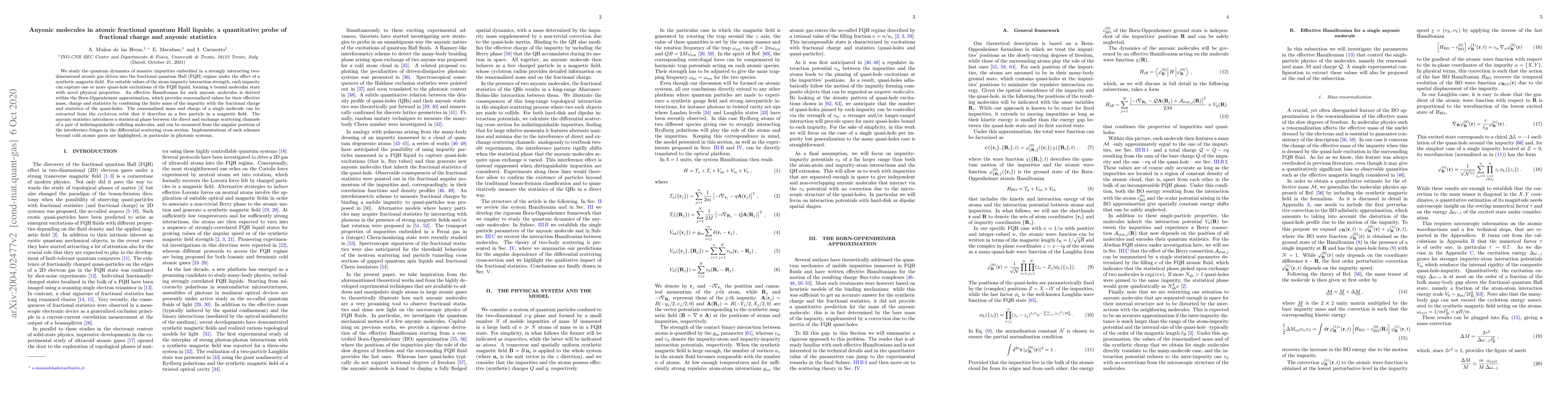 This research explores the quantum dynamics of impurities in fractional quantum Hall liquids, showing how they can form anyonic molecules that reveal insights into fractional charge and anyonic statistics. These molecules' properties are quantitatively probed through cyclotron orbits and interference fringe patterns.