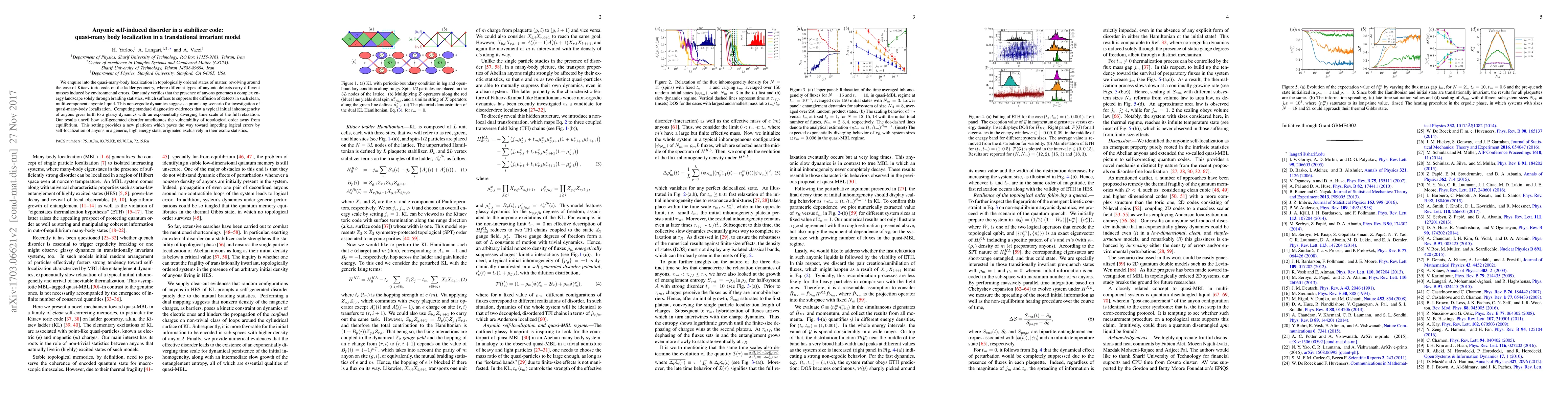 We enquire into the quasi-many-body localization in topologically ordered states of matter, revolving around the case of Kitaev toric code on ladder geometry, where different types of anyonic defects carry different masses induced by environmental errors. Our study verifies that random arrangement of anyons generates a complex energy landscape solely through braiding statistics, which suffices to suppress the diffusion of defects in such multi-component anyonic liquid. This non-ergodic dynamic suggests a promising scenario for investigation of quasi-many-body localization. Computing standard diagnostics evidences that, in such disorder-free many-body system, a typical initial inhomogeneity of anyons gives birth to a glassy dynamics with an exponentially diverging time scale of the full relaxation. A by-product of this dynamical effect is manifested by the slow growth of entanglement entropy, with characteristic time scales bearing resemblance to those of inhomogeneity relaxation. This setting provides a new platform which paves the way toward impeding logical errors by self-localization of anyons in a generic, high energy state, originated in their exotic statistics.