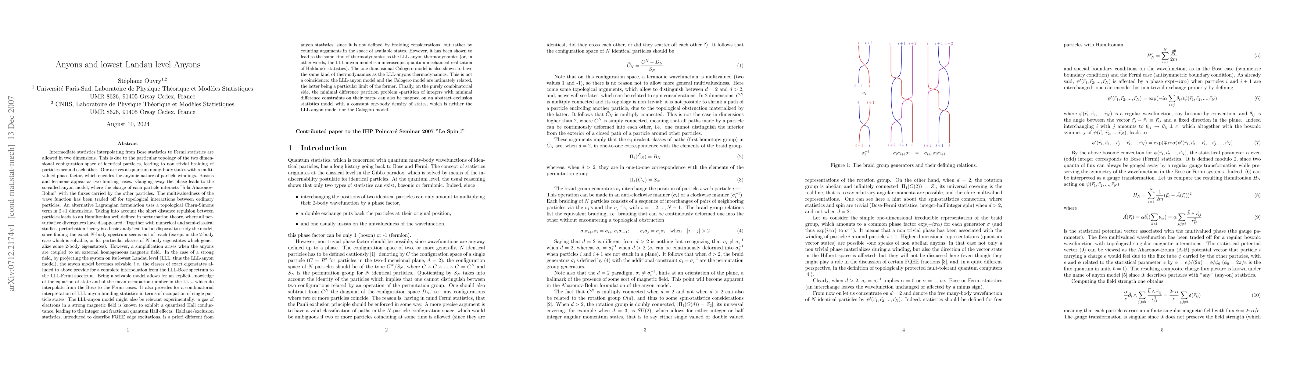 Summary: This paper reviews the Anyon model and its specific application to the lowest Landau level, exploring the theoretical framework and implications of anyons in quantum physics. It provides insights into the behavior and significance of anyons in condensed matter systems.