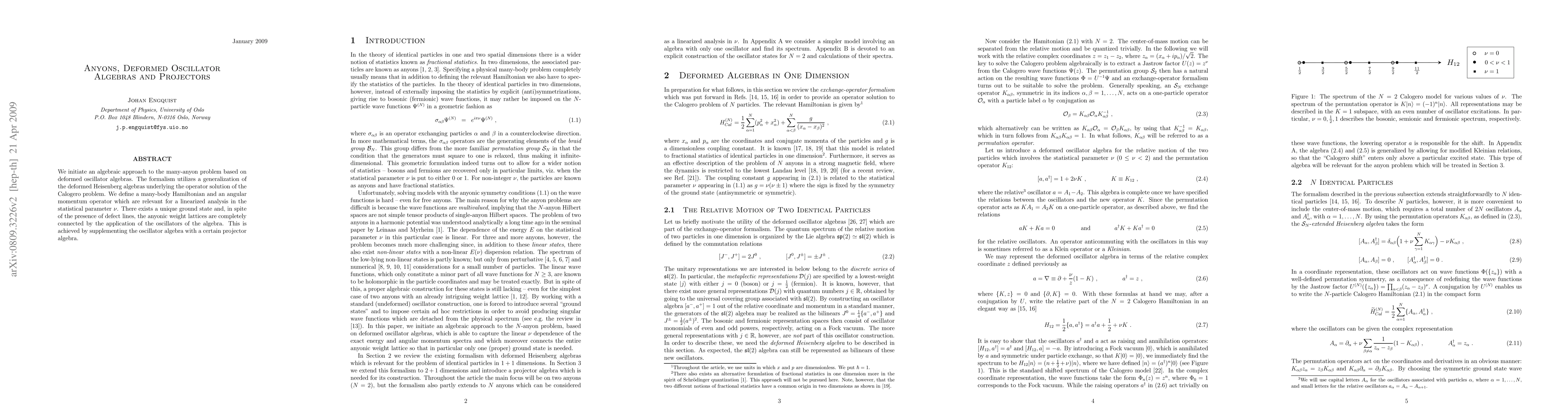 This paper introduces an algebraic framework for the many-anyon problem using deformed oscillator algebras, generalizing the deformed Heisenberg algebras. It defines a many-body Hamiltonian and angular momentum, revealing a unique ground state and fully connected anyonic weight lattices through the application of projector algebras.