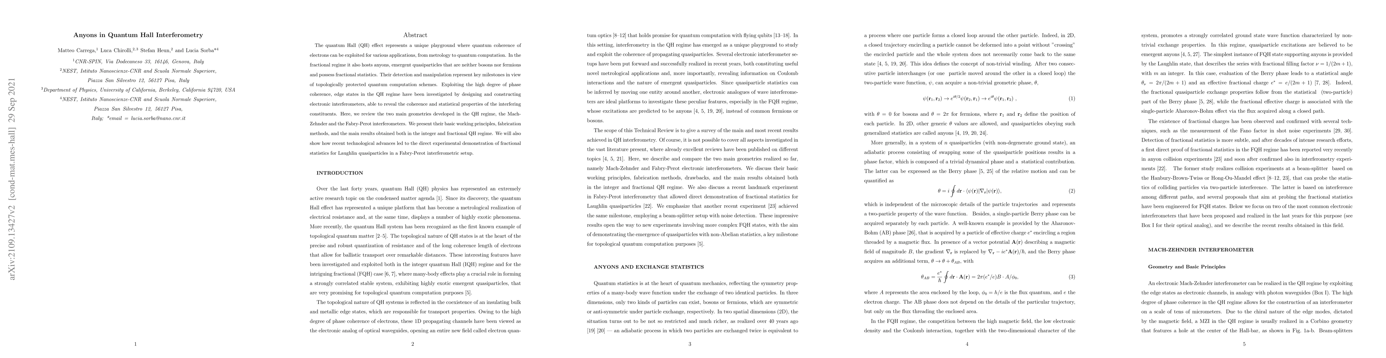 This paper reviews the use of quantum Hall effect interferometers to study anyons, focusing on Mach-Zehnder and Fabry-Perot geometries. It highlights recent experimental demonstrations of fractional statistics for Laughlin quasiparticles, marking progress towards topologically protected quantum computation.
