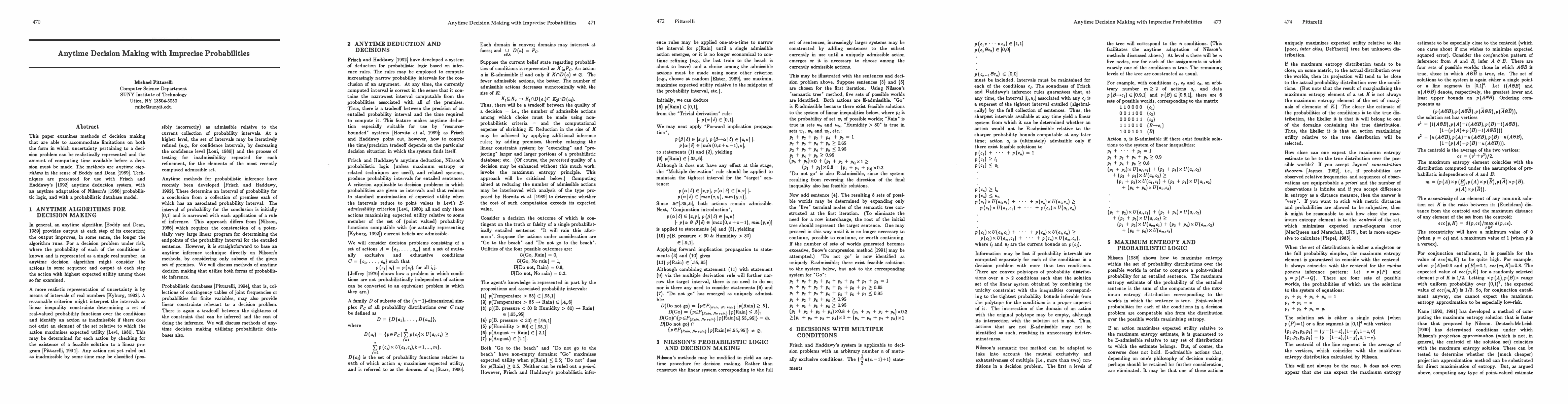 This paper proposes anytime decision-making algorithms to handle uncertainties and limited computational time, applying these techniques to an anytime deduction system, a probabilistic logic adaptation, and a probabilistic database model.
