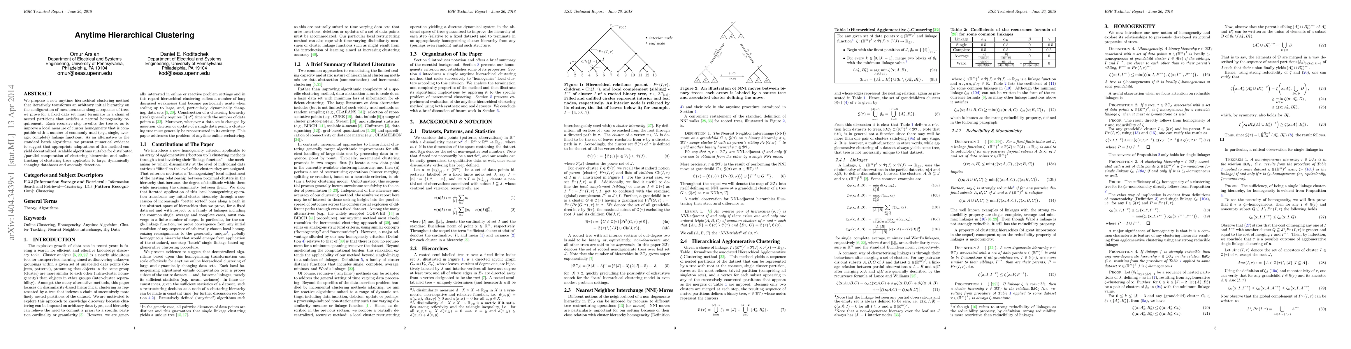 We propose a new anytime hierarchical clustering method that iteratively transforms an arbitrary initial hierarchy on the configuration of measurements along a sequence of trees we prove for a fixed data set must terminate in a chain of nested partitions that satisfies a natural homogeneity requirement. Each recursive step re-edits the tree so as to improve a local measure of cluster homogeneity that is compatible with a number of commonly used (e.g., single, average, complete) linkage functions. As an alternative to the standard batch algorithms, we present numerical evidence to suggest that appropriate adaptations of this method can yield decentralized, scalable algorithms suitable for distributed/parallel computation of clustering hierarchies and online tracking of clustering trees applicable to large, dynamically changing databases and anomaly detection.