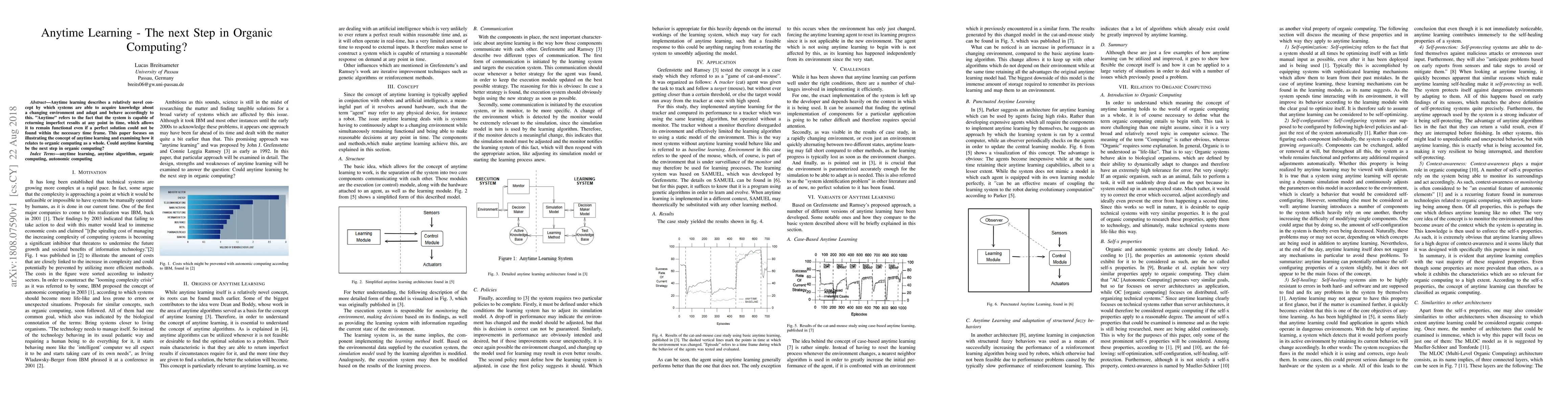 This paper explores anytime learning, a concept that enables systems to adapt to changing environments by accepting imperfect results at any point in time, and its potential as the next step in organic computing.