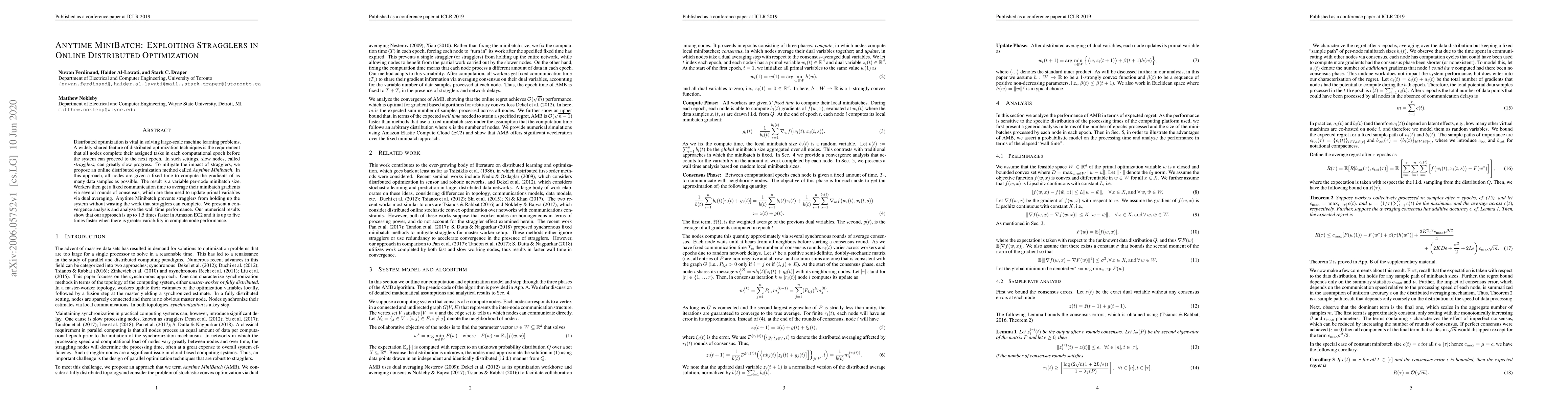 Researchers propose Anytime Minibatch, an online distributed optimization method that reduces stragglers' impact in machine learning tasks by allowing variable minibatch sizes and minimizing wasted work.